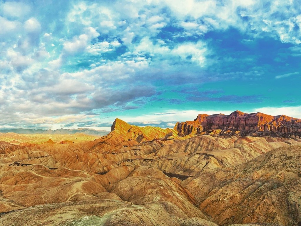 Zabriskie Point is probably the most well known can’t miss spot in Death Valley, and for good reason. The views from the point are absolutely stunning, and if you’re able to visit during sunrise or sunset hours you’re in for a treat. I went for sunrise on my first morning and was able to snag a prime spot before all of the photographers arrived. After you park in the small lot you’ll climb a small hill to arrive at the point. The views from here are beautiful, but for the best unobstructed view you’ll want to walk passed the point and down to a little dirt platform that looks over the valley. Be extra careful not to get too close to the edge if you’re there while it’s dark. There is no railing here and it’s a long way down. The parking lot is small and fills up quickly, so I recommend getting there as early as possible. You won’t be disappointed.