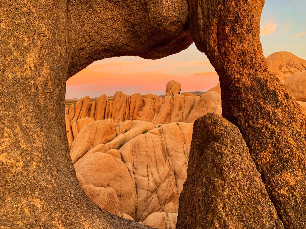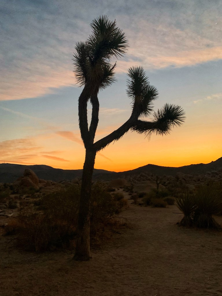 There is no shortage of wonderful places to stay in and around Joshua Tree. Within the national park there are five reservable campgrounds to choose from. Indian Cove and Jumbo Rocks are my favorites. Pitching a tent next to the incredible boulder formations is something everyone should experience at least once. These campgrounds have pit toilets, picnic tables, and fire grates, but no water. If you’re looking for water and flush toilets Black Rock or Cottonwood might be a better choice. There are also three first come campgrounds within the park. Campgrounds fill up early and are often reserved months in advance, so if you are unable to get a spot I suggest checking out Hipcamp. I’ve found some incredible campsites through this website (including Garth’s Boulder Gardens), and highly recommend it. Just be sure to read reviews and full descriptions of the site and ask the host any questions you have before booking. There are no hotels or lodges inside Joshua Tree National Park, but there are dozens of unique places to stay in the towns of Joshua Tree, Twentynine Palms, or Yucca Valley.
