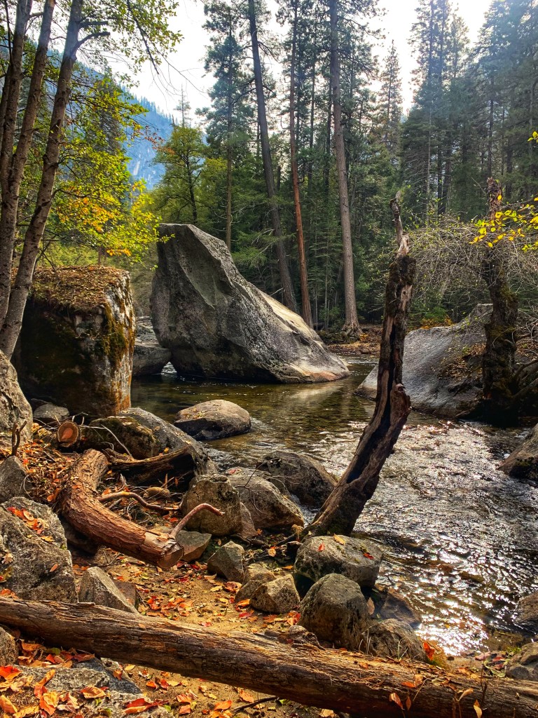 Upper Pines, Lower Pines, and North Pines Campgrounds can all be found within a short distance of each other. This spring I was gifted a campsite in Lower Pines from a friend and finally had my first experience with camping inside the park. I had previously camped in several places outside of the park and loved it, but there’s something extra special about being able to wake up in the heart of Yosemite Valley. This fall I was also lucky enough to snag a spot at Lower Pines for several days and found that you really can’t go wrong with any spot at any of the campgrounds. There are some prime riverfront spots at Lower and North Pines, but they will always be the hardest to book. Regardless of what site you’re able to get, the gorgeous Merced River and surrounding area are right at your door. The campgrounds have flush toilets and drinking water and each campsite has a picnic table, fire ring, and bear box. There are no water or electrical hookups in Yosemite.