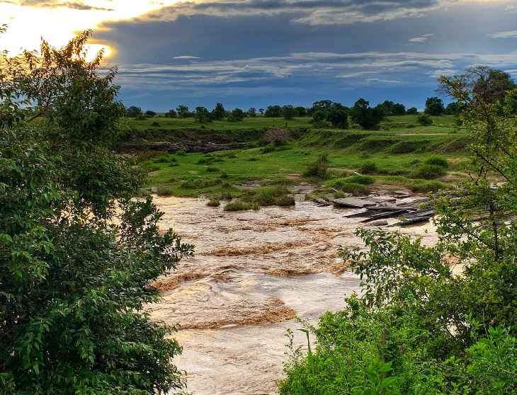 After two nights in Maasai Mara, and what turned out to be our favorite camp of the trip, we began our journey to Tanzania. Maasai Mara and the Serengeti share an ecosystem with only the border between Kenya and Tanzania separating them. The drive between these two countries was the beginning of our wildest day on safari. We came across a bridge that was partially washed out due to the rains. We sat there idling for several minutes watching people and cattle attempt to cross on foot. Eileen and I grew anxious watching the waters rise and wondered if the vehicle would survive an attempt to cross. I asked Dixon if there was any way around this bridge and he said there was, but it would take several hours. We watched the water rise and the crossing looked to dangerous to attempt. Dixon looked uncomfortable and unsure which made me even more concerned. I could see the headline: Tourist Vehicle Swept Away in Kenyan Flood Waters and asked if we could please go around. To this day I stand by that decision and believe there’s no way to know whether it would have been safe to cross, but this detour put us several hours behind our scheduled arrival time.